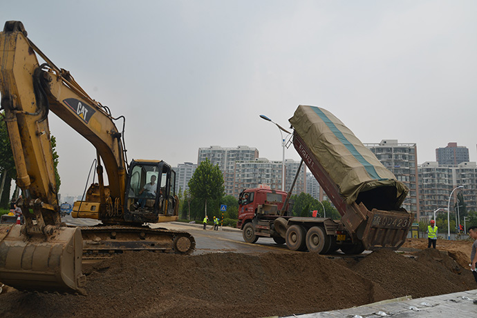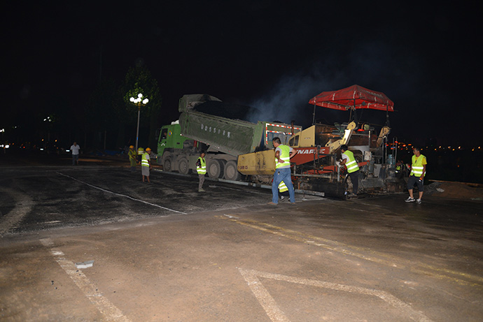 为保证广大市民在周一早上的出行便利和安全,进一步提高通行条件,9月11日17点即进行了沥青路面摊铺施工。此次采用的ATB沥青碎石具有较高的抗剪切强度与抗裂性能,在沥青碎石冷却至表面温度60度以下后,进行6cmAC-13上面层施工。经碾压完成,温度降至60度以下,即清理现场,放行通车。