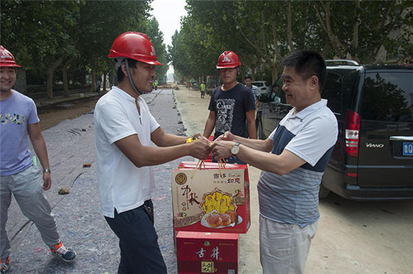 9月14日、15日,公司工会主席王金诗带队到部分在建项目、工地,看望慰问一线施工人员,为大家送去节日祝福。