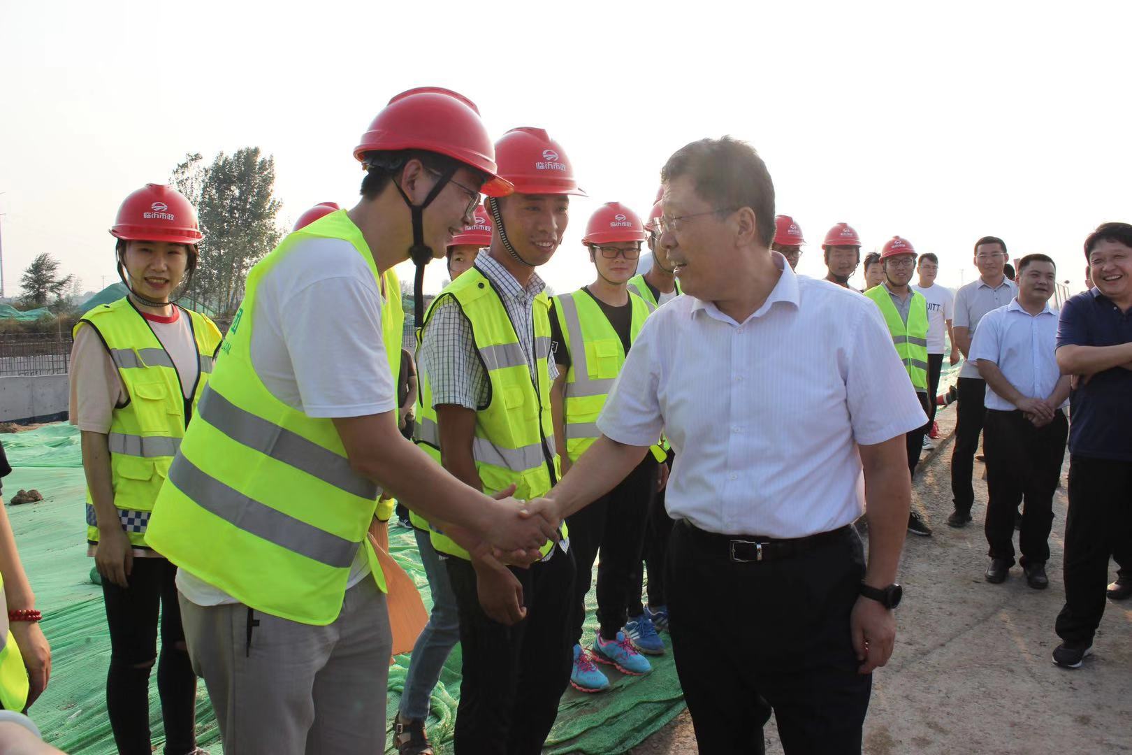 10月1日,市委书记王玉君视察集团高铁片区道路及管廊工程,并慰问节日期间仍坚守在施工一线的全体家人,市委常委、常务副市长侯晓滨,市委常委、秘书长范连生,市住建局局长张卫强,集团董事长、总经理庞玉坤等陪同。
